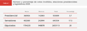 Luego de una larga discusión en medio del proceso de cambio constitucional, el Congreso acordó implementar un sistema de inscripción automática y voto obligatorio desde el plebiscito de salida de 2022. Dado que lo que estaba en juego eran las reglas de convivencia democrática expresadas en la nueva Constitución, se argumentó que dicho texto debía estar revestido de la mayor legitimidad posible. Por tanto, era necesario convocar a todos los chilenos a las urnas, imponiendo sanciones económicas para quienes no lo hicieran. La participación, como era de esperarse, creció muy sustantivamente, alcanzando un 85.9%, que varió muy poco para las elecciones subsiguientes. De hecho, en la reciente elección presidencial de primera vuelta, la participación electoral fue de 85.4% según cifras provisorias del Servel (Ver gráfico 1). Pero no todo lo que brilla es oro. Es cierto que el voto voluntario agudizó las brechas de clase en la participación electoral, siendo mayor en las comunas con más ingresos y menor en las más pobres y populares. Lo que se hacía, en la práctica, era transformar las desigualdades económicas en desigualdades políticas. Dado que, a participación desigual, representación desigual, la democracia se transformaba en un escenario más elitista y de baja incorporación social. Con el voto obligatorio, esas desigualdades políticas quedaron en el pasado. Las Condes y San Ramón comenzaron a participar casi de manera idéntica, rompiendo el predominio de los votantes de mayores ingresos. Pero algo más ocurría y que no estábamos mirando en detalle: la votación inválida. Es decir, los votos nulos y los votos blancos. Una cosa es medir la participación como el volumen de votantes, y otra muy distinta es medir la participación como el volumen de votantes que se inclina por alguna de las preferencias o candidatos en competencia. ¿No será que, en realidad, la antigua desafección expresada en abstención electoral se había transformado ahora en votación inválida? Es una hipótesis plausible.